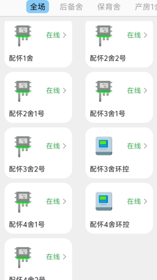 2. 用户进入首页后,能够添加和管理养殖舍区,还能实时查看设备状态。
