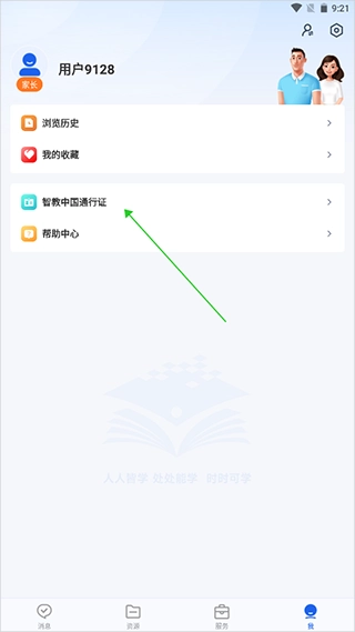 注册完成之后,需前往【我】页面,点击【智教中国通行证】来绑定平台。