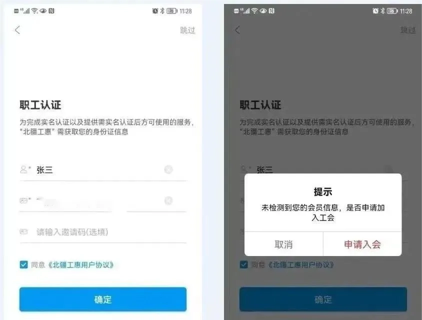 4、填写实名信息,进行入会申请(若已是会员,不会弹出入会申请界面,直接注册成功)