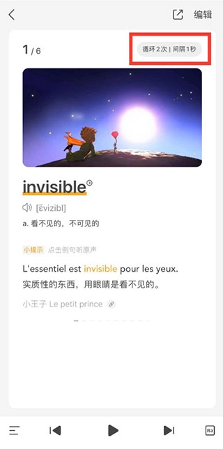 制作完成的单词例句卡片,可在账号 - 我的生词本 - 例句卡片处进行查看与复习。例句卡片具备自动播放功能,你能够自定义循环次数、间隔时间,以及设置例句和释义的播放等内容。如此一来,哪怕是在走路的时候,也能随时收听自己生词本里的内容,让每一秒学习时间都不被浪费!这无疑是学霸必备的宝藏功能。