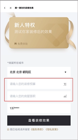 4、输入用户的预算和房子面积后,点击查看装修效果。