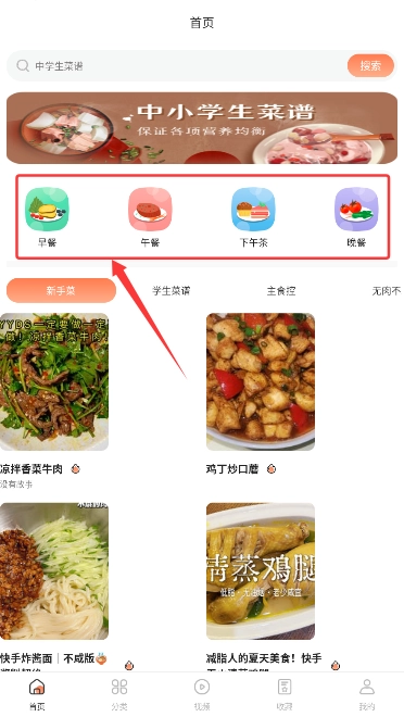 2、首页设有"早餐推荐""午餐精选"等时段分类,方便快速查找对应食谱。