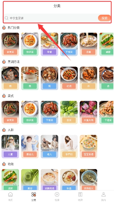 3、通过"菜谱搜索"功能,输入食材或菜名关键词即可精准查找目标菜品。