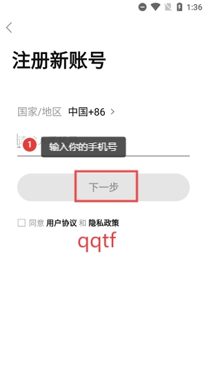 在注册界面输入手机号等信息,点击完成注册。