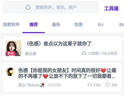 3. 在软件搜索栏输入关键字,即可查询到详细的铃声信息,点击操作便可。