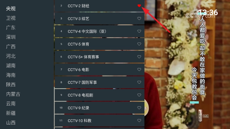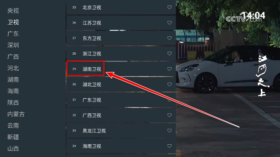2. 如以下图片所示,点击左边的屏幕,左侧便会呈现出央视、卫视、地方台频道。在此,小编以点击卫视为示例。