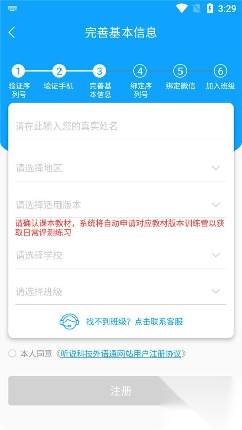 4. 填好学校、班级、地区等与个人相关的信息,随后确认注册。