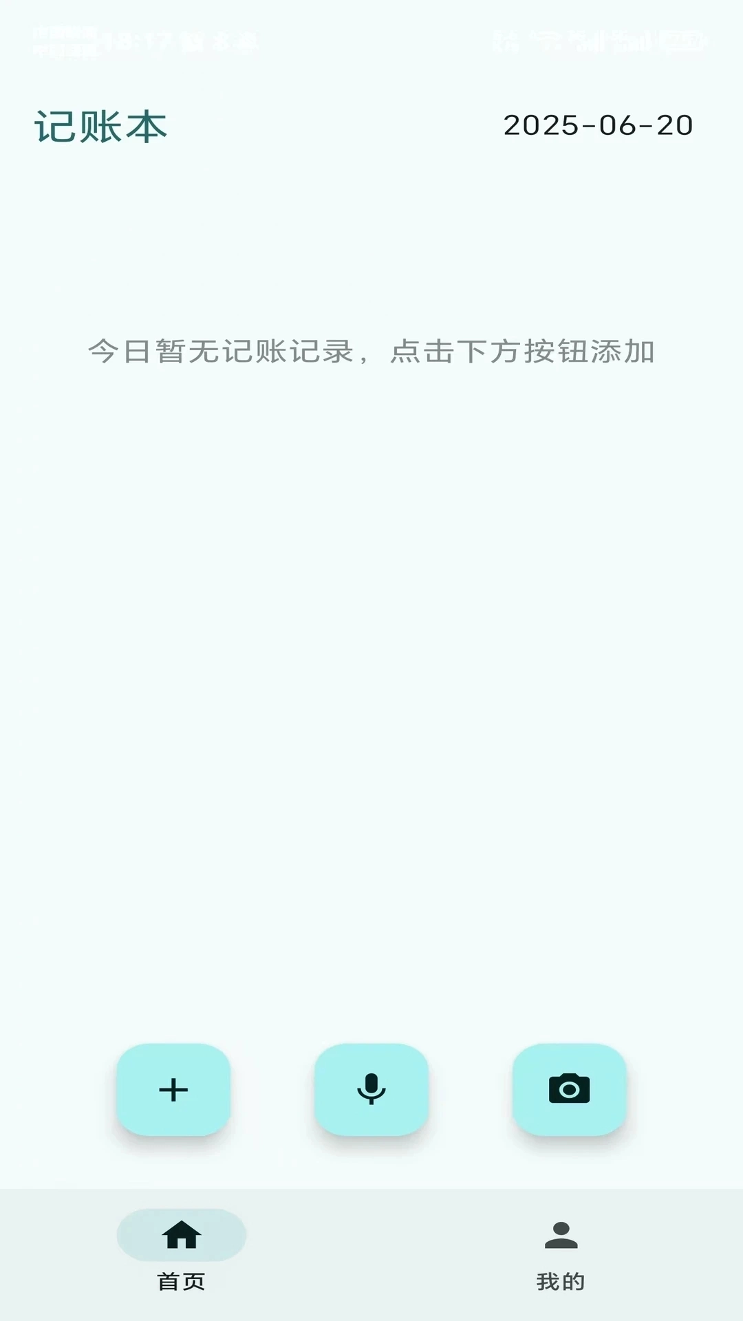 1. 在首页点击“+”号,即可添加记账信息。此外,还能通过语音或拍照的方式来记账。