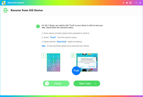 2. 直接恢复7种文件从iPhone 5S / 5C / 5 / 4S,iPad的4/3/2 / mini和iPod touch的5
