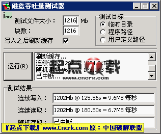 Disk Thruput Tester V1.2 汉化绿色特别版 磁盘吞吐量测试器。DiskTT 可调用 Windows 内核读写函数测试磁盘的吞吐性能它以 MB 为单位,量化测试您的磁盘每秒可读/写的数据量但请您明确,您磁盘的实际性能并非仅仅取决于磁盘的速度