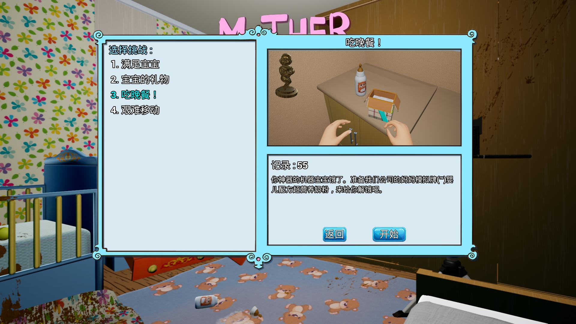 在游戏中你将作为一个母亲,面对一个可爱的,无害的新生婴儿。给他喂食,换尿布,或者哄他入睡,用你的快速的反应,钢铁般的神经和满满的爱心去照顾他成长。你的小宝宝会用微笑来回应你的爱。【汉化人员名单】