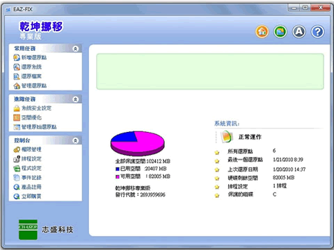 10.安装 EAZ-FIX 后请勿使用磁碟重组软体重组你的硬碟,请使用 EAZ-FIX 主控制台中的“空间优化”来重组EAZ-FIX 所保护的磁碟。