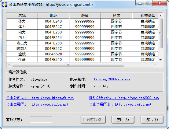 体力,内力,攻击力,防御力,金钱,生命等无限锁定!