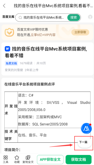 4、点击红框中的“下一篇”,即可浏览相关案例参考文档。