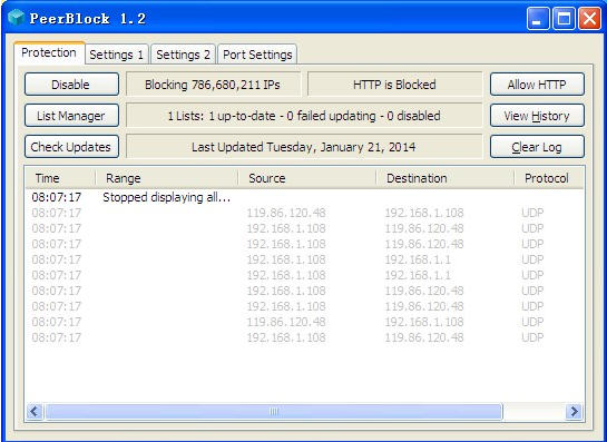 ip屏蔽软件(PeerBlock) v1.2 官方绿色版