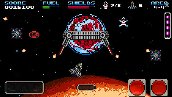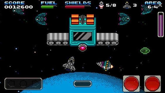 武装航天战机是一款射击游戏,俗称打飞机。游戏玩法就是画面左下箭头符号控制航天飞机左右转向,右下按钮分别是射击与推进。游戏总共有32个动感十足的关卡,8个史诗级别的BOSS战。可以收集各种道具助你闯关。
