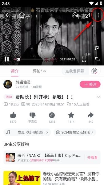 3、当进入视频播放页面时,点击右上角如所示的三个点。