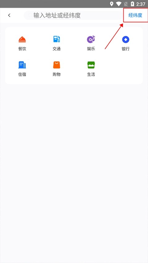 随后,进入到搜索界面,并且切换到经纬度搜索模式。