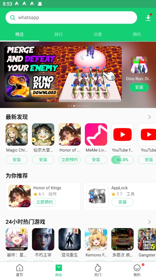 3. 此处为分类页面,各个不同分类下涵盖了最新上线的应用与游戏,以及热门的应用和游戏。