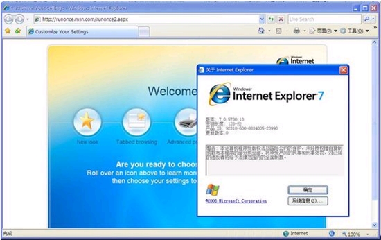 注意:此版本IE 7只能运行于Windows XP SP2上。