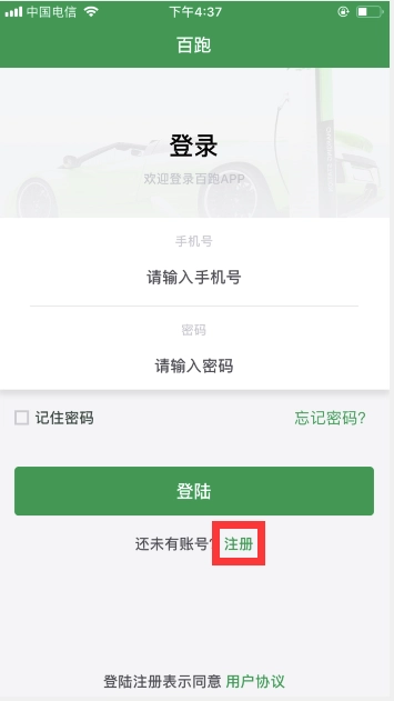 1. 开启百跑用车App,完成实名认证(仅需上传身份证)。