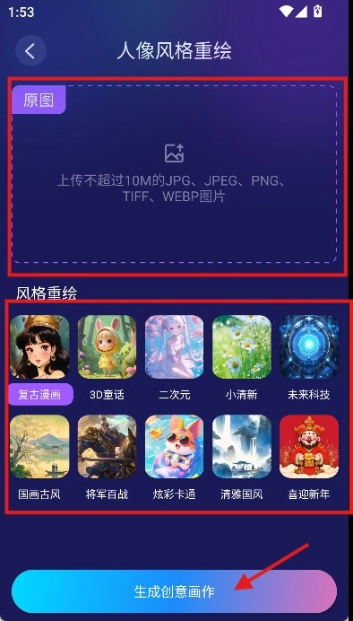 4、设定确认无误后,点击“生成创意画作”,AI将自动为您完成绘图。