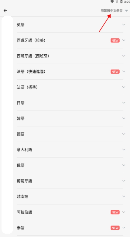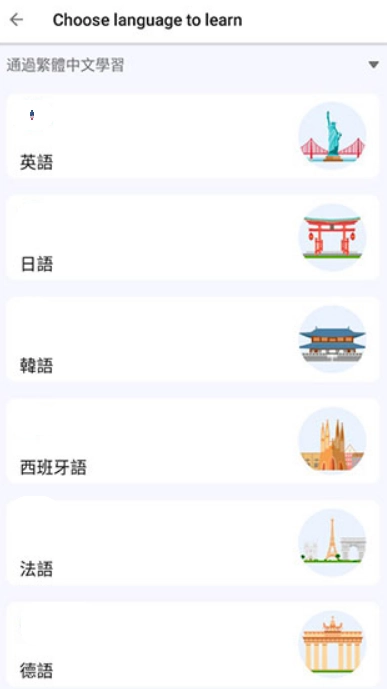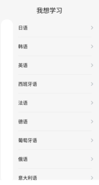 2、接着,用户能够挑选自己想要学习的外语类别。
