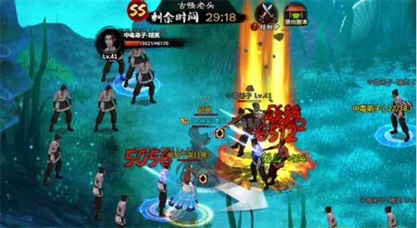 在游戏中,玩家无需在战斗时进行任何的操作,战斗都是自动进行的。在战斗的过程中,玩家和对手的弟子会根据速度决定起手次序,并根据此次序发动攻击,普通攻击优先攻击就近的前排单位,技能根据技能范围锁定攻击对象,最先把对方全部击倒者获得胜利。