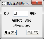 打开你下载的?薄幸鼠标连点器,鼠标项设为左键,点击项设为单击,频率为0.01秒/次。开始设为F5有的应该是F9),停止设为F6(有的应该是F10)。进入游戏,将鼠标放在你要连击的位置,按下开始键,鼠标即为连点状态,当达到你想要达到的效果时,立即按下停止键,否则会出现连点你鼠标所在位置的任意文件,会让你不知所措。