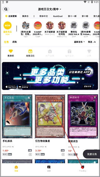 1. 在本页安装集换社,安装完成打开后进入主界面,接着点击个人中心。