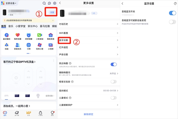 首先打开小度,来到首页,轻点右上角的“设置”图标,从中找到“蓝牙设置”选项。完成音箱蓝牙的开启操作后,接着开启手机蓝牙,在搜索结果里找到“小度”设备,进行配对连接就可以了。