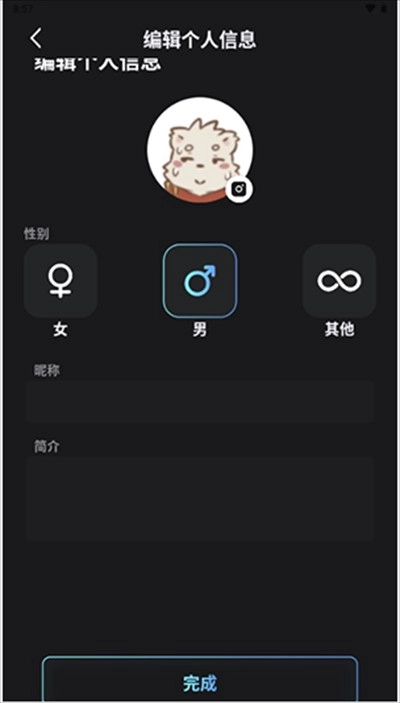 5、填写我们的性别以及简介。