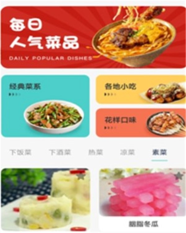 对不同类型的菜式进行分类,以便用户依据菜式差异,快速找到心仪的美食菜谱。