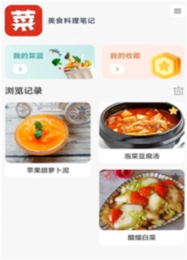 用户能够把自己喜爱的各类美食菜谱进行收藏,下次就能直接在收藏里查找。