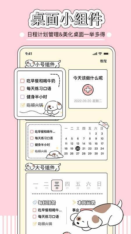 2. 可爱桌面组件:支持任务一键打卡,同时有多款萌萌风格可供随心切换。