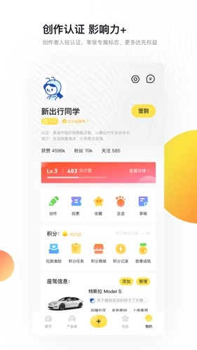 社交互动板块——打造了专门面向新能源汽车爱好者进行交流的空间,具备发布动态、参与讨论以及组织活动等功能。