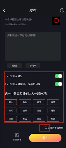 一共有12大分类,你能够为作品添加上自己心仪的主题。