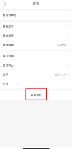 2. 在设置页面里点击安全退出按钮。
