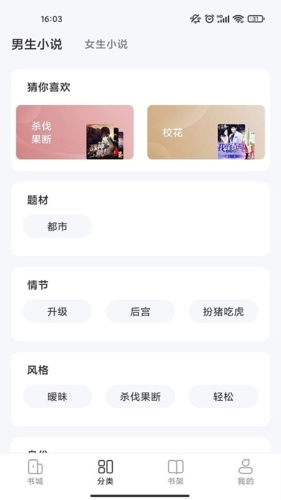 2、点击分类,其中包含极为丰富且详细的题材,用户可随意挑选,像穿越、都市、末世、游戏、武侠、科幻、玄幻等等。