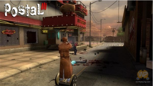 喋血街头3新画面中甚至出现了“生化武器”。可以说游戏中一切活动的物体都可以成为虐杀的对象,当放到一个对手后,你可以在他身上爽快的撒泡尿作为记号。不仅如此,《喋血街头3》中还加入了一些十八禁的成分,玩家甚至可以光顾性用品店……
