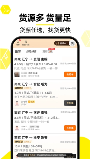 2、平台将依据司机的货运习惯,推送各类不同的订单。
