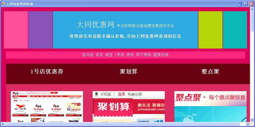 优惠网浏览器是一款可以快速进入各大网购网站,方便、快捷。而且只要拥有大同优惠网浏览器就可以在这个网站获得更多的优惠卷,让用户买的放心,买的便宜。