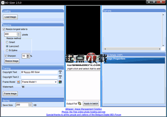 BD Sizer是一个图形处理工具,可以调整图形文件的大小,并保持原始的EXIF数据。它使用方便,可以为照片添加水印,支持进行批量处理,内置了XMP编辑器,可以查看和编辑XMP信息