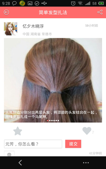 随时上传您的发型,美的元素需要分享。自信的人永远都是最美的。看到心仪的发型还可以赞TA哦,评论一下,或许还能有一段意外的邂逅。
