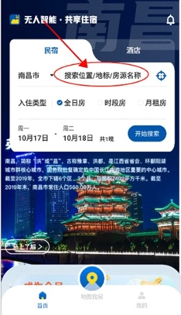 在搜索框中输入地点或者房源名称,系统会推荐周边的选项。