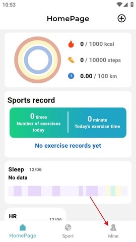 1. 开启Ring Life软件,进入软件主页面,点击底部的【Mine】。