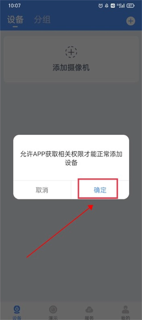 1. 打开设备界面,点击界面上方的“添加摄像机”按钮。