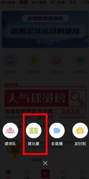 在弹出框里选择“创建比赛”这一选项,接着进行后续操作。