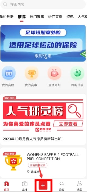 开启“我是球星”应用,轻点底部的“+”图标,随即展开操作。