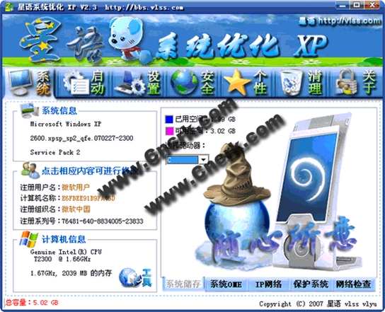 星语系统优化 XP V4.7 简体中文绿色免费版 一个按自己多年来安装调整系统做的系统优化软件,差不多一软在手凡事无忧了.